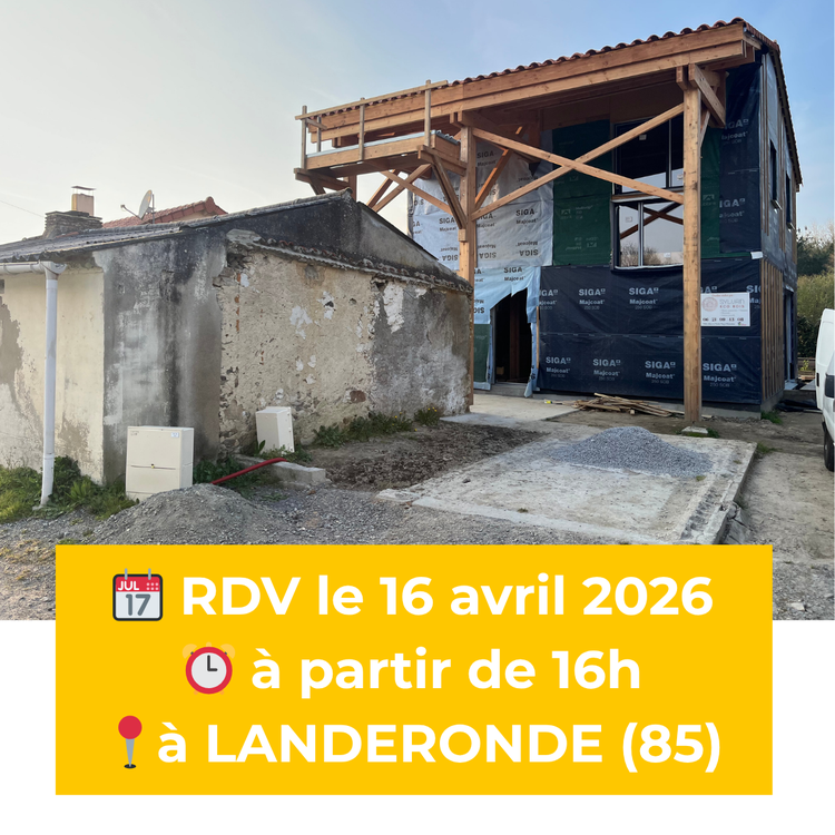 Rejoignez-nous en Vendée, à Landeronde, pour découvrir le chantier en cours des Bâtisses Heureuses. Le projet de Coralie et Tristan ? Construire une maison en ossature bois isolée en bottes de paille et enduite en terre crue par l’intérieur.